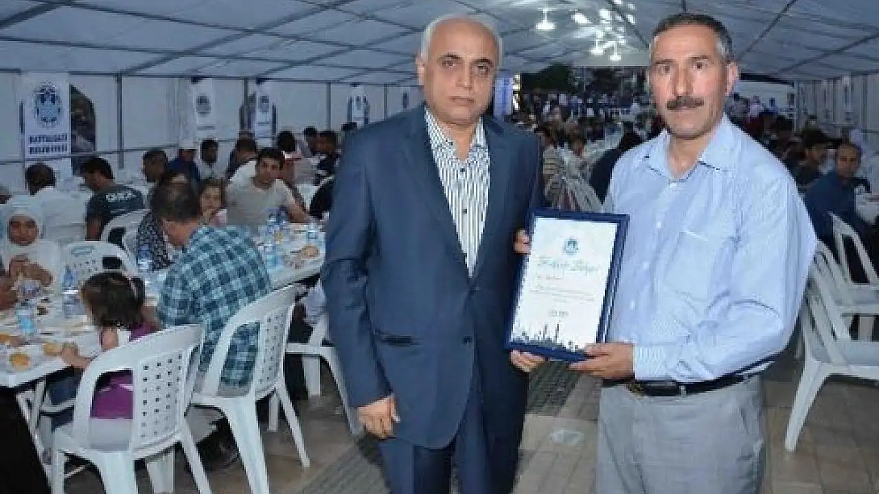 İftar programında daha sonra Battalgazi Belediye Başkan Vekili Zafer Kırçuval, iftar programına katılan Malatya İl Müftülüğü Din Hizmetleri ve Eğitimi Şube Müdürü Abdulkadir Keleş’e teşekkür belgesi verirken, Battalgazi Belediye Başkan Yardımcısı Zafer Karakuş ise, iftar yemeğini karşılayan iş adamı Sıtkı Yalçın’ın oğlu Murat Yalçın’a teşekkür belgesi verdi.