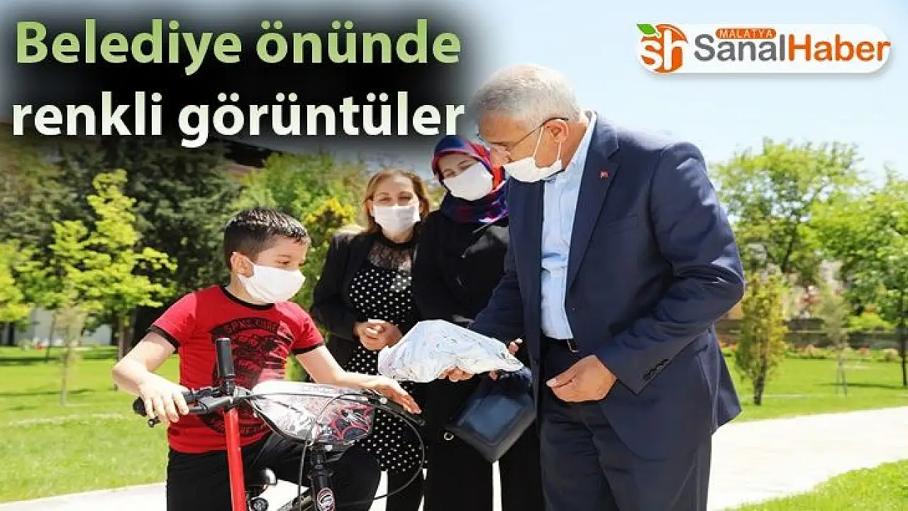 Yeni tip korona virüs salgını nedeniyle alınan önlemler kapsamında sokağa çıkmaları kısıtlanan 14 yaş altı çocuklar uzun bir aradan sonra ilk defa sokağa çıkarken, Battalgazi Belediyesi önü renkli görüntülere sahne oldu.