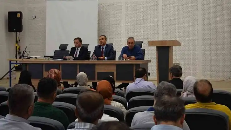 İlçe Milli Eğitim Müdürlüğü Salonunda düzenlenen toplantıya İlçe Milli Eğitim Müdürü Mehmet Demirel başkanlık etti.