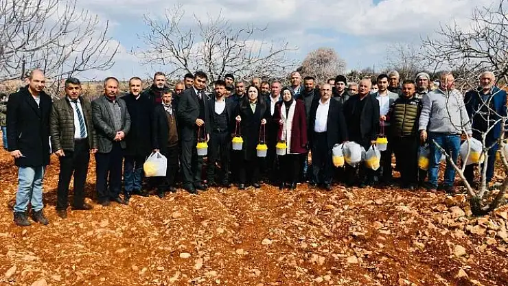 Adıyaman´ın Besni ilçesinde yoğun olarak bulunan Antepfıstığı bahçelerinde kullanılması için dal güvesine karşı tuzak dağıtıldı.
