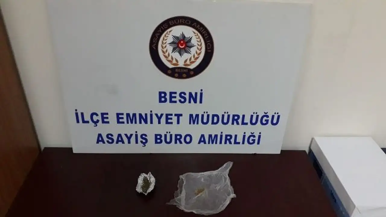 Besni İlçe Emniyet Müdürlüğü Asayiş Büro Ekiplerinin uyuşturucu madde kullanıcıları ve satıcılarına yönelik yapılan çalışmaları sonucunda M.G. isimli şahsın üzerinden toplam 3 gram sentetik kannobinoid ve Jamaika uyuşturucu madde ele geçirildi.