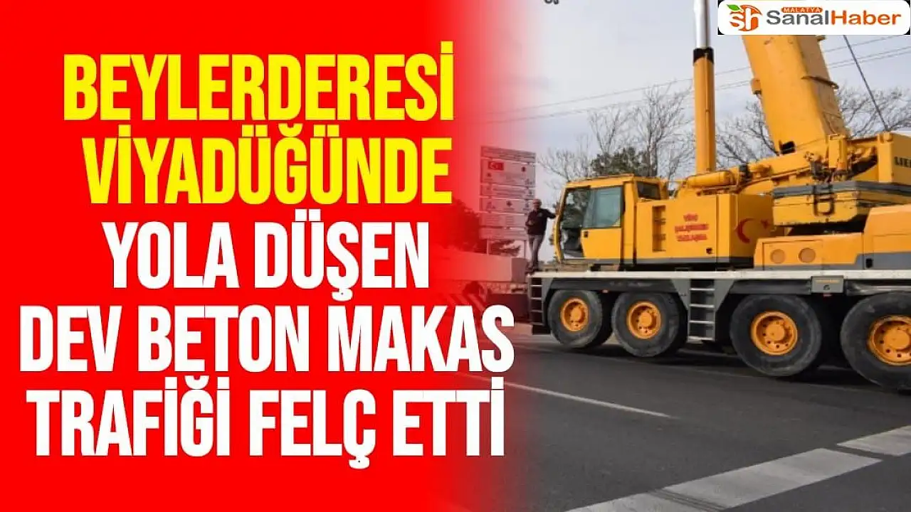 Malatya´da seyir halinde olan bir tırdan yola düşen 24 metre uzunluğundaki dev beton makas trafiği felç etti.