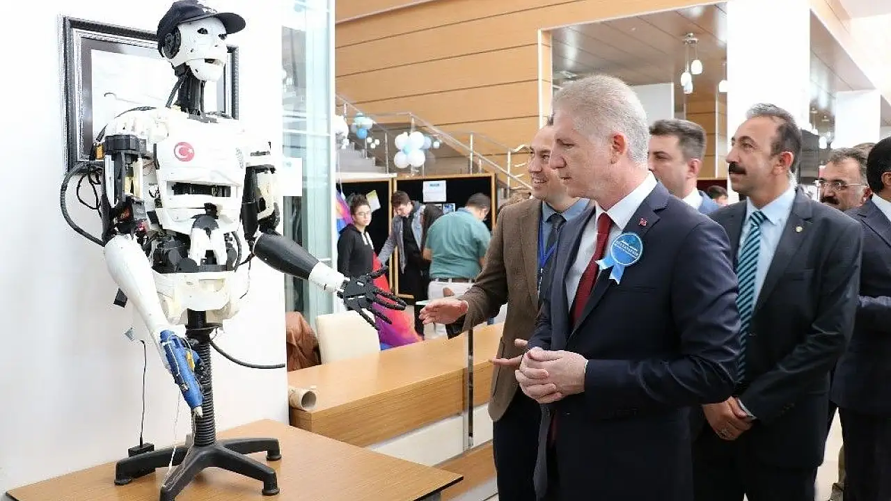 Sivas’ta bu yıl 2’ncisi düzenlenen ’SultanŞehir Bilimle Şenleniyor II’ fuarında ’Yiğido’ adındaki insansı robot görenlerin ilgi odağı oldu.