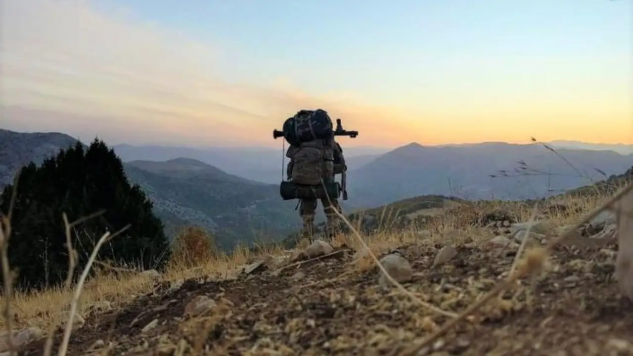 Fotoğrafta, operasyona giden komandonun sırtında büyük bir çantanın olduğu ve kayalıklardan yürüyerek gittiği görüldü.