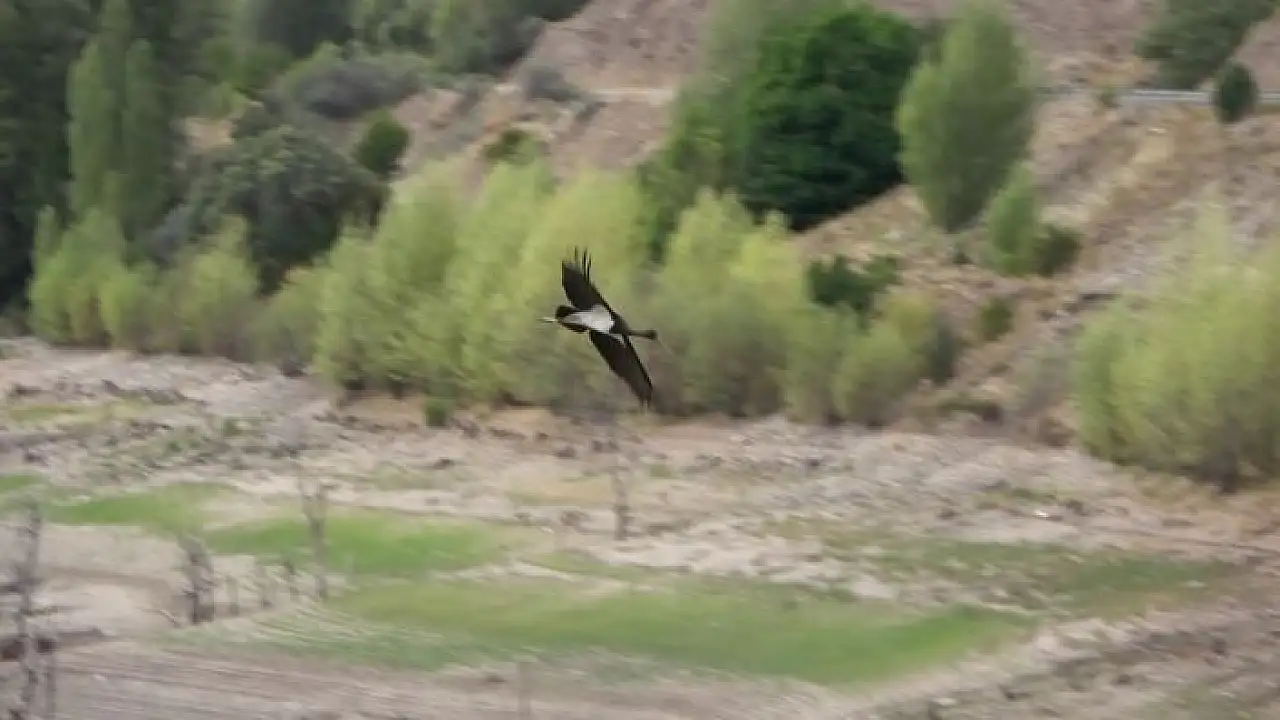 Türkiye´de nadir olarak görülen kuş türleri arasında bulunan kara leylekler Sivas´ın Hafik ilçesinde görüntülendi.