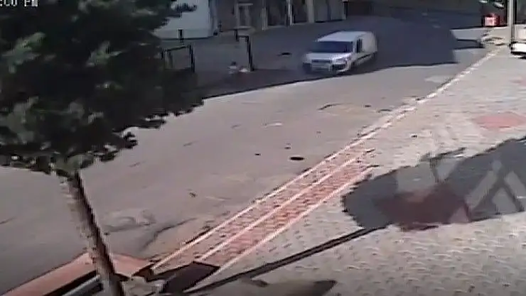 Kahramanmaraş’ta bir binanın bahçesinden bisikletiyle yola çıkan çocuğa hafif ticari araç çarptı. O anlar bir iş yerinin güvenlik kamerası tarafından kaydedildi.