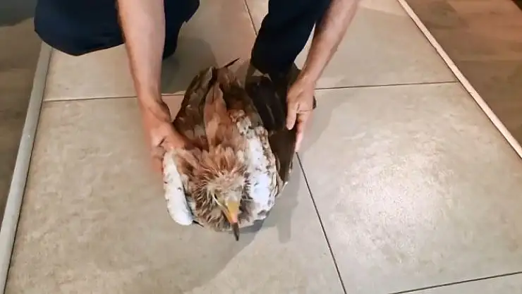 'Bitkin halde bulunan kızıl akbaba, ekiplere teslim edildi'
