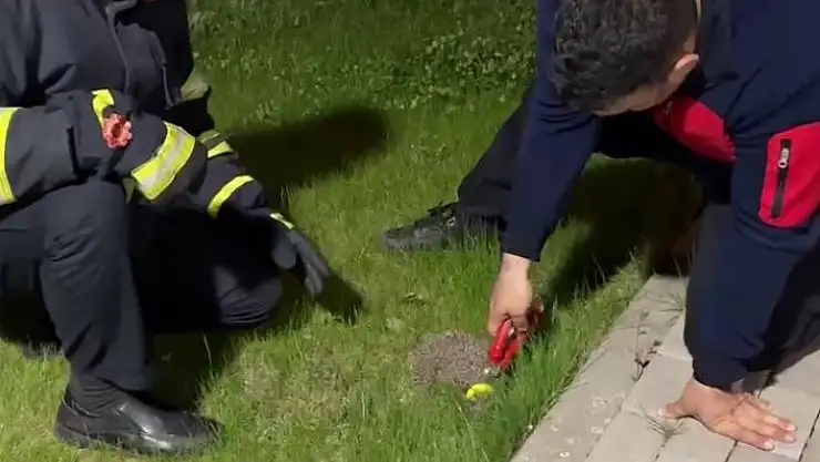 'Boynuna halka sıkışan kirpi itfaiyeye sığındı'