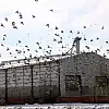 Sivas´ta bir un fabrikasının çatısında toplanan binlerce yaban güvercini görsel şölen oluşturdu.