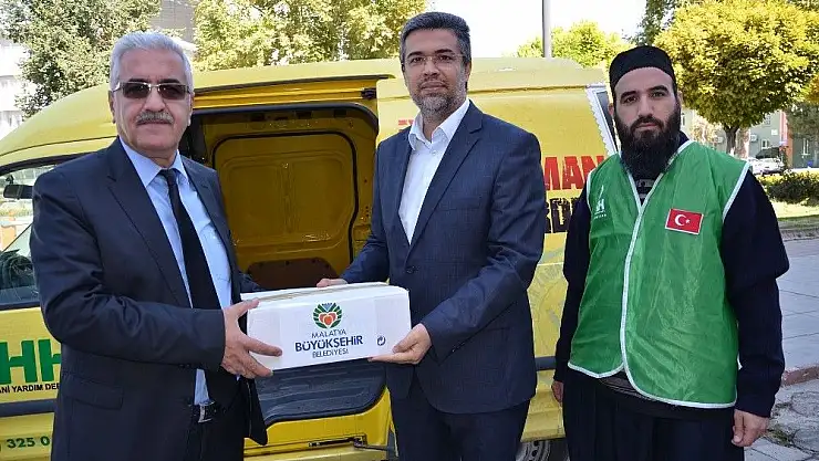 İlaçlar, Suriye sınırındaki kamplarda hizmet veren sağlık birimlerine ulaştırılmak üzere Sağlık ve Sosyal Hizmetler Dairesi Başkanı Ziya Kesriklioğlu tarafından İHH Malatya Temsilcisi Ömer Derin’e teslim edildi.