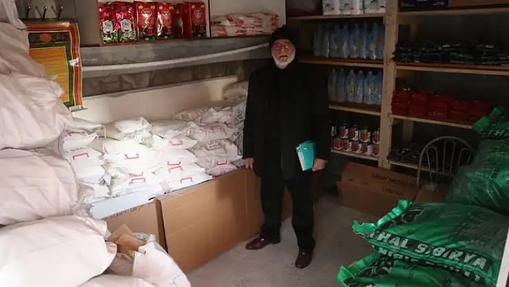 Sivas´ta yaşayan Mahmut Uçtu, Cami bahçesindeki müştemilatı adeta bakkala dönüştürüp, hayır severlerden topladığı erzakları ücretsiz olarak ihtiyaç sahiplerine teslim ediyor.