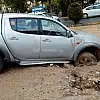 Atatürk Bulvarı DSİ Kavşağı yakınlarında servis yolunda yapılan alt yapı çalışmaların gerçekleştirildiği yeri kullanmak isteyen sürücüsü öğrenilemeyen 02 HC 327 bir kamyonet sürücüsü biri kaç gündür aşırı yağıştan dolayı kamyonet çamura battı.