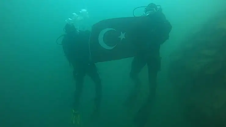 - 'Çanakkale şehitleri anısına 30 metre derinlikte Türk bayrağı açtılar'
