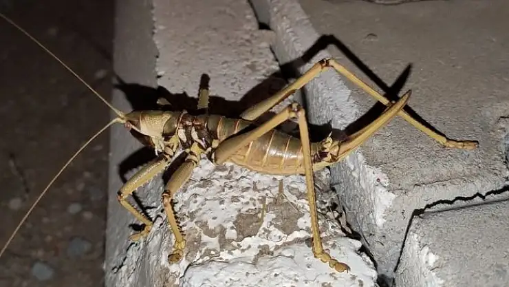Büyüklüğü ve etçil olması nedeniyle `Çağaboğan´ olarak bilinen Saga Ephippigera isimli çekirge Adıyaman´ın Çelikhan ilçesinde görüntülendi.