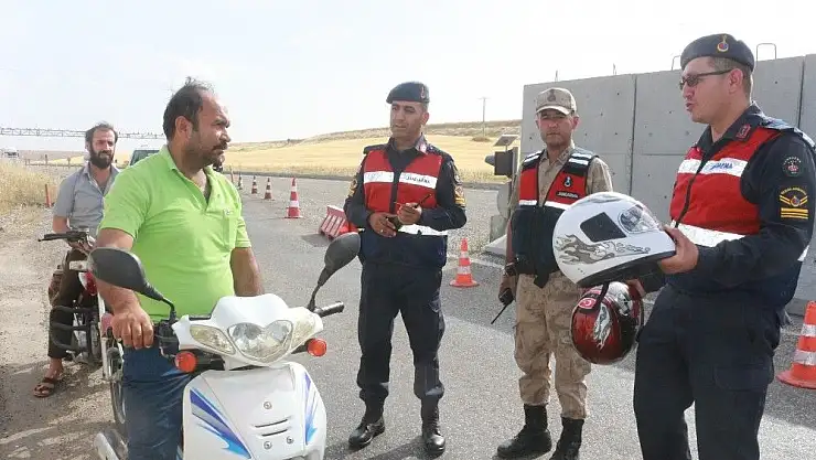 Adıyaman İl Jandarma Komutanlığı ekipleri trafik uygulamasında, kaskları bulunmayan motosiklet sürücülerine ceza yazmak yerine kak hediye etti.