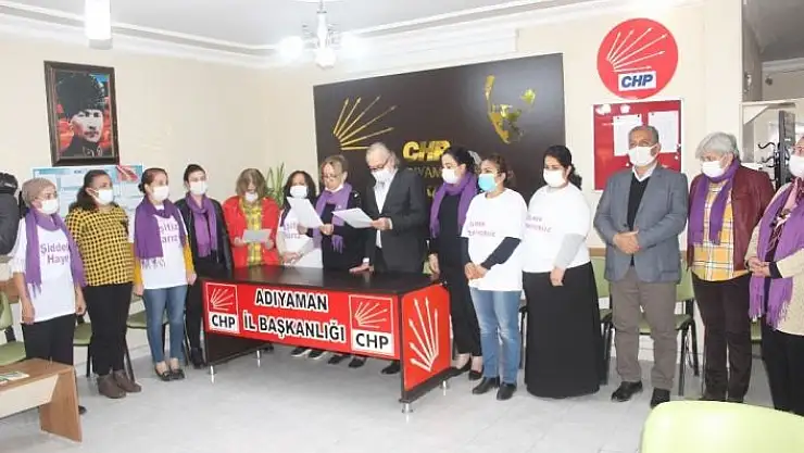 Parti binasında gerçekleştirilen basın açıklamasına CHP Adıyaman İl Başkanı Burak Binzet, CHP İl Kadın Kolları Başkanı Songül Yavuz ve partililer katıldı.