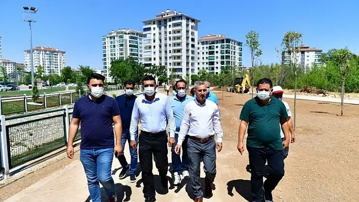 Yeşilyurt Belediye Başkanı Mehmet Çınar, Horata Deresi etrafında devam eden yeşillendirme çalışmalarını inceledi.