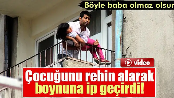 Çocuğunu rehin alarak boynuna ip geçirdi
