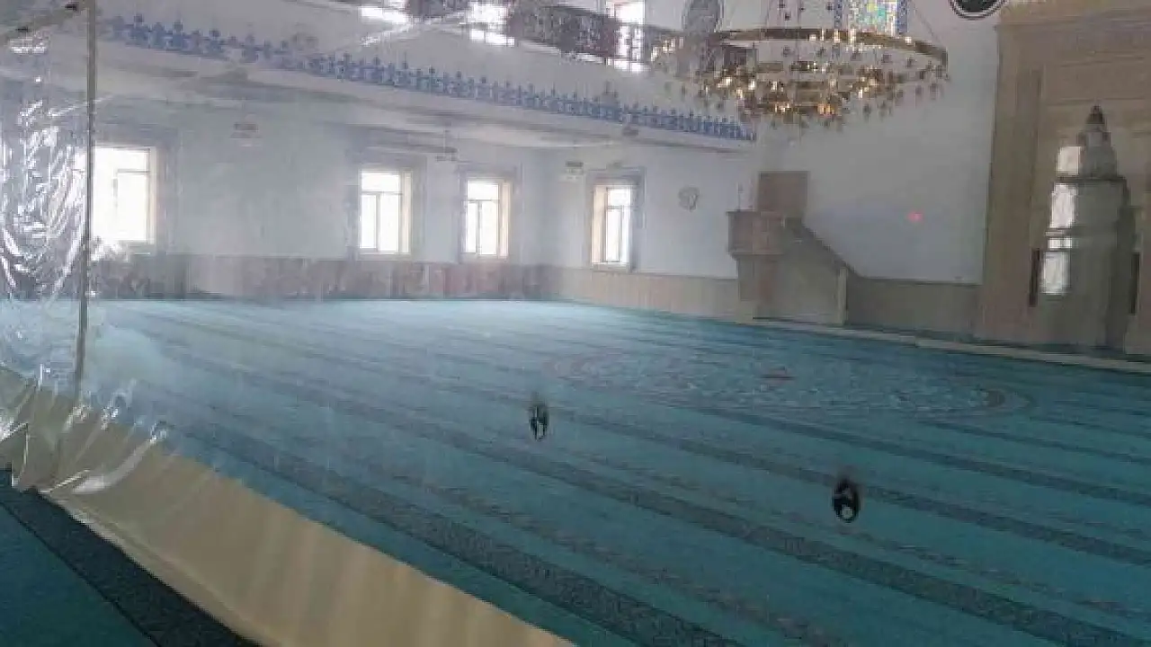 Kahramanmaraş´ta iki çocuk bir camiye girip, koronavirüs tedbiri için çekilen naylonu yakmaya çalıştı.