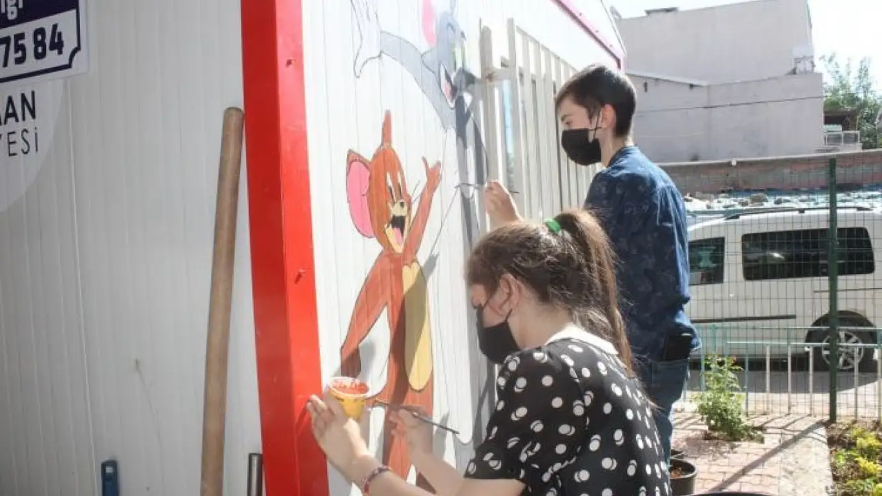 'Çocukların mahalle parkına çizdiği resimler büyük beğeni aldı'