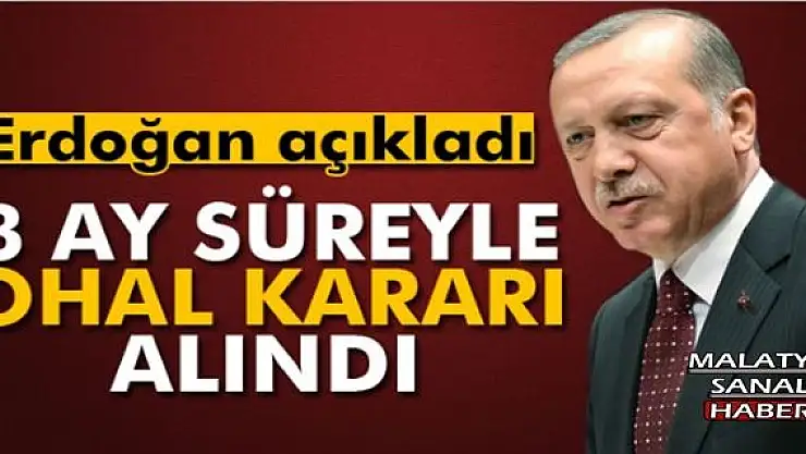 Cumhurbaşkanı Erdoğan Bakanlar Kurulu kararıyla 3 ay süreyle olağanüstü hal ilan edilmesinin kararlaştırıldığını açıkladı.