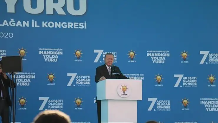 Cumhurbaşkanı Erdoğan, AK Parti Kahramanmaraş İl Teşkilatı´nın 7. Olağan kongresine katıldı. Burada partililere seslenen Erdoğan, "Ülke ve millet olarak en az 100 yıl öncesi gibi kritik bir süreçten geçiyoruz. Anadolu topraklarından yeni bir şahlanışla ülkemize barış getirecek bir mücadelenin içindeyiz. Üye sayımızın 11 milyon 200 bini bulması bunun en önemli göstergesidir. Kadın üye sayımızın 5 milyon 250 bine ulaşması bu mücadeleye kadınlarımızın da sahip çıktığının göstergesidir. AK Parti 7´nci Olağan Kongresi´ni böyle önemli bir dönemde gerçekleştiriyoruz. Kaderimizi, istikbalimizi milletimizin kaderi ve istikbaliyle bir görüyoruz. Son 2-3 yılda teşkilatlarımızı yeni isimlerle güçlendirirken ahde vefayı da elden bırakmadık. Kuruyan dallar budandıkça hedefe daha güvenle ilerliyoruz. Allah´ın yardımı ve milletimizin verdiği güçten başka bir şey aramadan yolumuzda yürüyoruz.