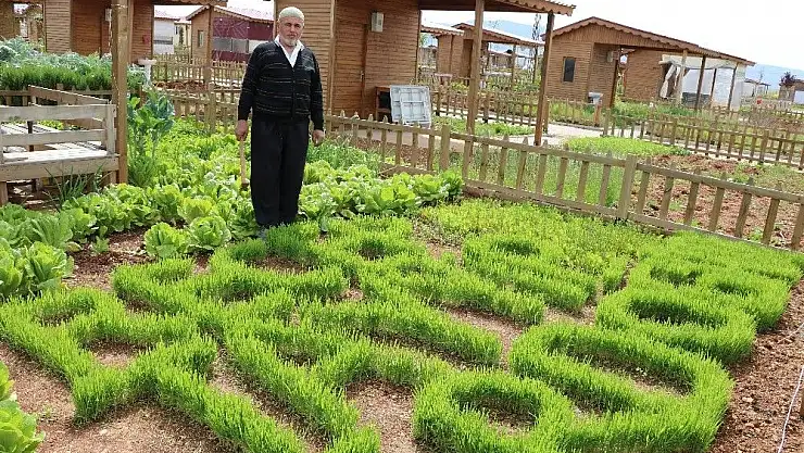Kahramanmaraşlı Bahittin Kahraman, Cumhurbaşkanı Recep Tayyip Erdoğan’ın ismini hobi bahçesinde çimlerle yazdı.
