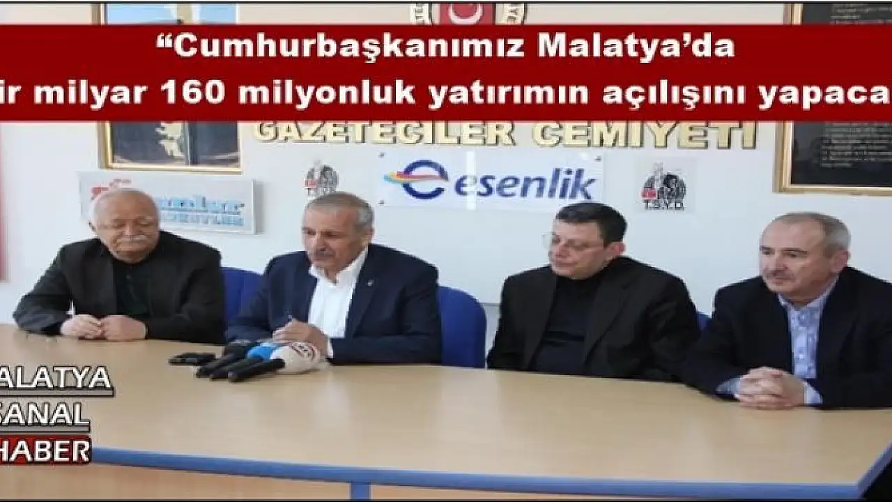 - 'Cumhurbaşkanımız Malatya´da bir milyar 160 milyonluk yatırımın açılışını yapacak'''''