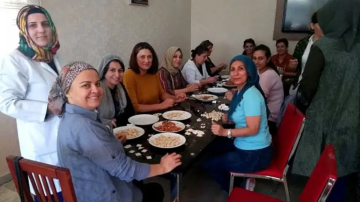Adıyaman’da dar gelirli öğrencilere gelir sağlamak için bayan polisler polis eşleri mantı döktü.