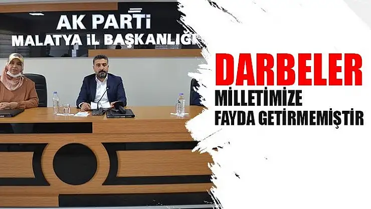 AK Parti Malatya İl Teşkilatı İnsan Haklarından Sorumlu İl Başkan Yardımcısı Av. Namık Gören yaptığı basın açıklamasında, "Darbeler milletimize fayda getirmemiştir" denildi.