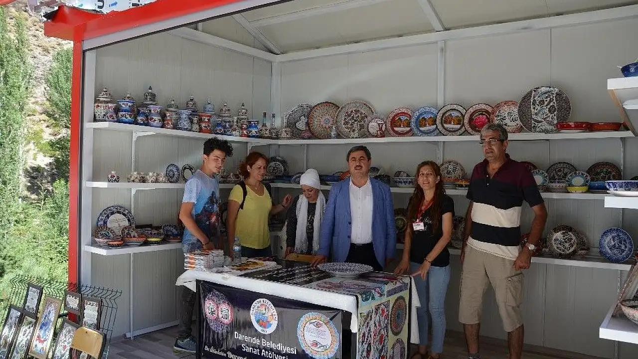Darende Belediyesi tarafından açılan çini seramik kursunda yapılan eserler Günpınar Şelalesinde açılan stantlarda sergilendi.
