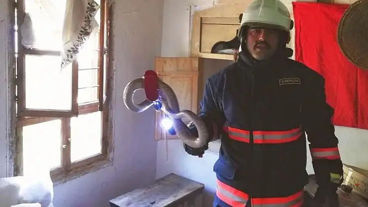 Malatya’nın Darende ilçesinde eve giren yılan, itfaiye ekipleri tarafından bulunarak evden çıkartıldı.