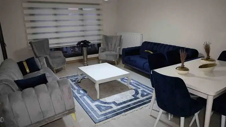 Kahramanmaraş merkezli depremler sonrasında başlanan ve yapımı tamamlanıp teslimat aşamasına gelinen konutlardaki örnek daire göz kamaştırı