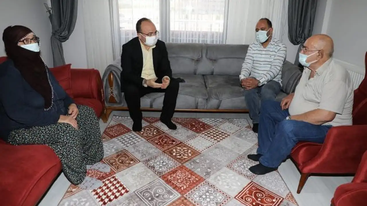 Serhat Aslan´ın 24 Ocak Elazığ depreminde eşini, iki yavrusunu, kayınpederi ve kayınvalidesini kaybettiğini dile getiren Vali Erkaya Yırık, "Büyük bir üzüntü yaşamış hemşehrimiz şu an itibari ile annesi ve babasıyla birlikte kalıyor. Bugüne kadar acısını hep yüreğine gömmüş. Dolayısıyla dışarıdan herhangi bir talebi olmamış. Böyle bir yüce gönle sahip kardeşimizi, Babalar Günü dolayısıyla ziyaret edelim gönlünden geçelim, bir taziyesini iletelim düşüncesi ile buradayız. Elbette Babalar Günü´nde Babalar Günü kutlanacak yegane insanlardan birisi de depremzede ailelerimiz, babalarımız, şehit aileleri, şehitlerimizin babalarıdır. Bu vesile ile baba ocağındayız. Ben Serhat Aslan kardeşime başsağlığı diliyorum. Allah cennetlik olarak aldığı yavrularıyla birlikte inşallah öbür dünyada cennette bir araya getirir ve başka keder vermez inşallah" dedi.