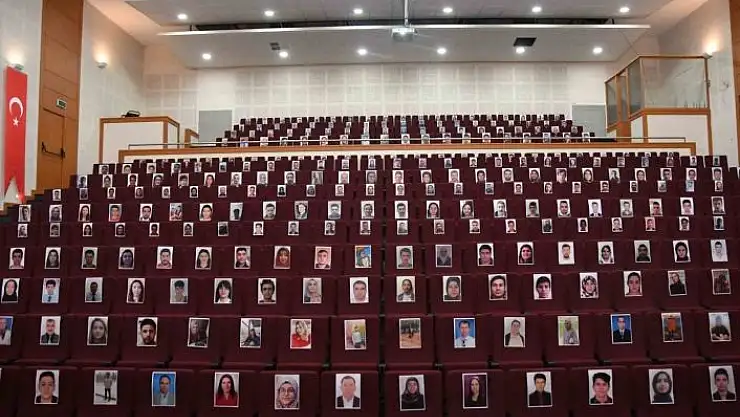 Duygusal anların yaşandığı törende üniversite yönetimi ve personeli ile öğrenciler tarafından, depremde vefat eden personel ve öğrencilerin fotoğraflarının yer aldığı alana karanfiller bırakıldı.