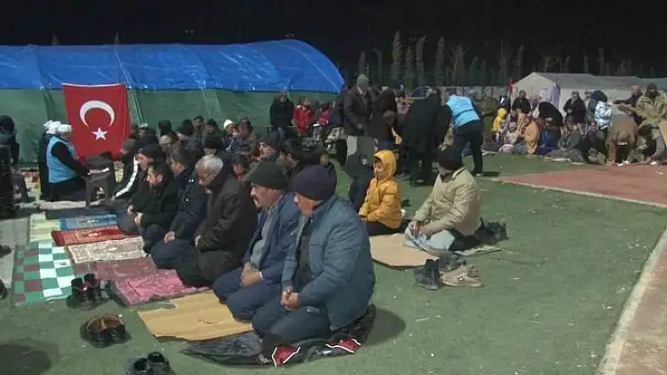 Adıyaman´da depremzedeler çadır kentte saf tutarak, Miraç Kandili´nde dua edip, namaz kıldı.Merkez üssü Kahramanmaraş´ın Pazarcık