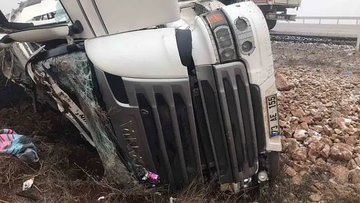 Sivasın Kangal ilçesinde sürücüsünün direksiyon hakimiyetini kaybettiği tır yan yattı. Kazada araç içeresinde sıkışan sürücü ekiple