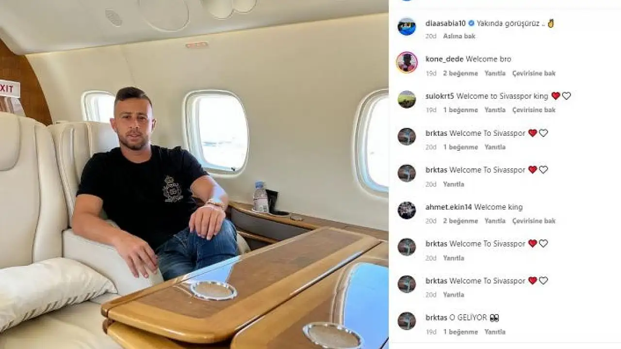 Ailesi ile beraber uçakta fotoğraflarını paylaşan 29 yaşındaki orta saha oyuncusu Dia Saba, paylaşımına; "Sivasspor taraftarlarından binlerce mesaj. Tamam arkadaşlar. Geliyorum. Yakında görüşürüz" notunu ekledi.