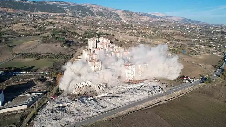 Kahramanmaraş merkezli meydana gelen depremler sonrasında ağır hasar raporu verilen site dinamit ile yıkıldı.