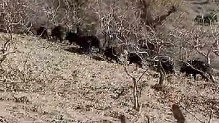Adıyaman´ın Tut ilçesine bağlı Yalankoz köyü kırsalında vatandaşlar yaban domuzu sürüsüyle karşılaştı. Kırsal alanda hızla ilerleyen domuz sürüsünü dağda gezinen bir vatandaş görüntüledi. 20´den fazla domuz sürü halinde hızla koşarak ilerledi. Saatte yaklaşık 30 kilometre hızla ilerleyen yaban domuz sürüsünü gören vatandaş, cep telefonuyla yaban domuzlarını görüntüledi.