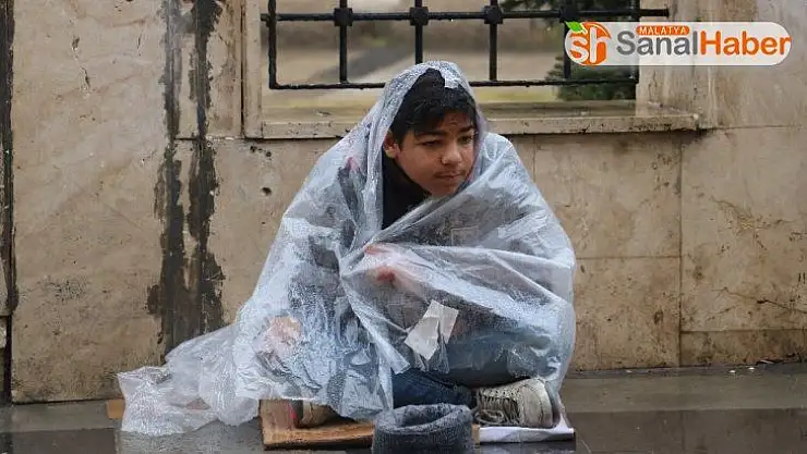 SİVAS (İHA) – Sivas’ta yağışlı hava etkisini arttırırken, ülkelerinde süren iç savaştan kaçarak Sivas’a gelen Suriyeli çocukların yağmur altında dilenmesi yürek burktu.
