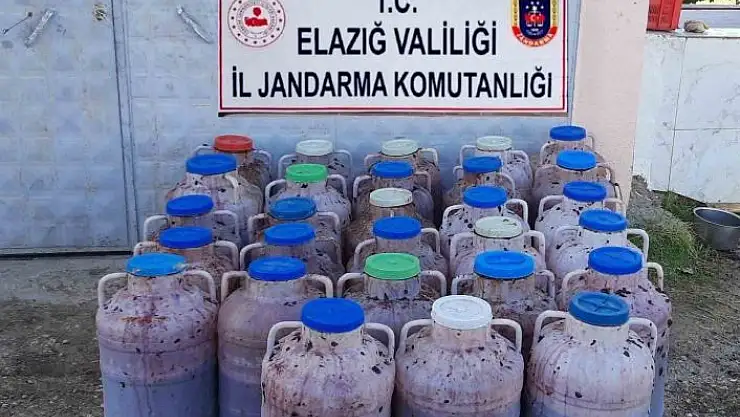 Elazığ´da jandarma ekiplerinin yaptığı çalışmada, 2 ton 85 litre kaçak şarap ele geçirildi.İl Jandarma Komutanlığı, bölgede huzur