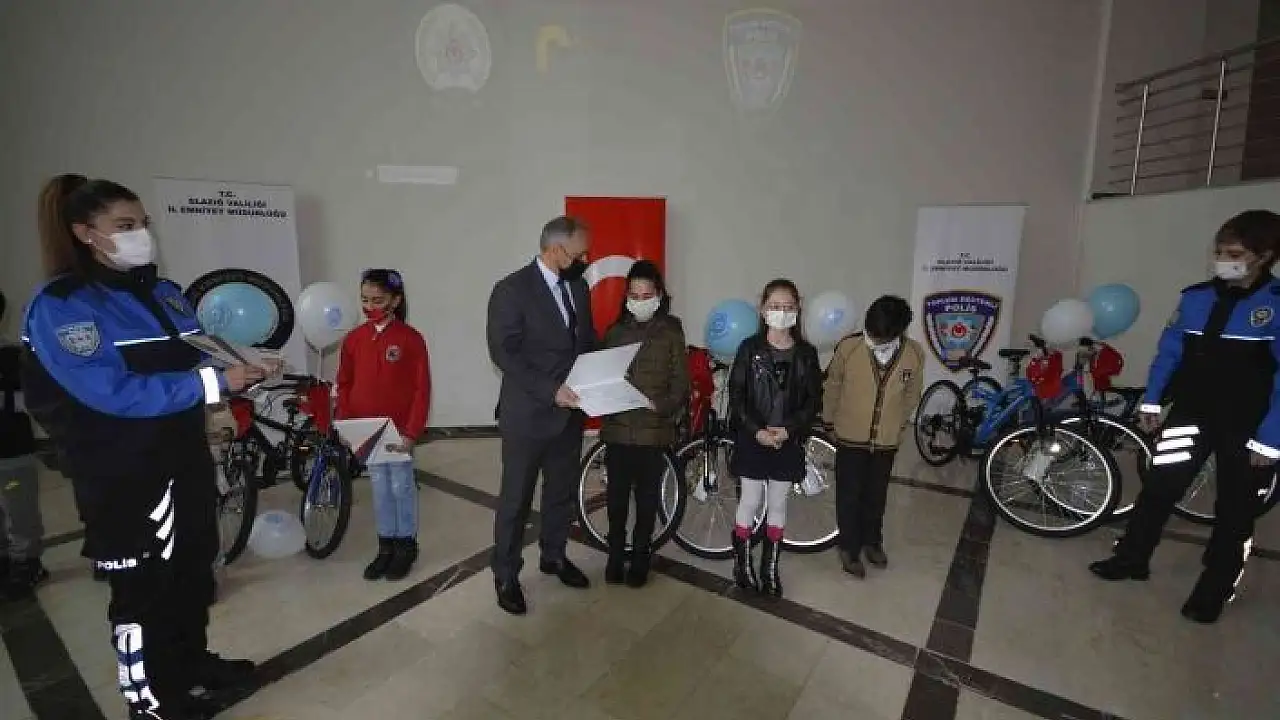 Üstün gayret ve başarı göstererek, kategorilerinde 1´inci, 2´nci ve 3´üncü olarak dereceye giren 9 öğrenci, İl Emniyet Müdürü Celal Sel, İl Milli Eğitim Müdürü Feyzi Gürtürk ve 3´üncü Sınıf Emniyet Müdürü Neşe Sel tarafından bisiklet hediye edilerek ödüllendirildi.