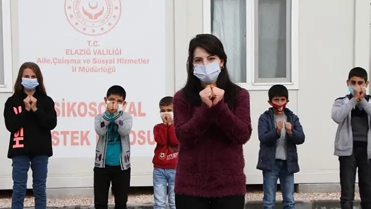 İzmir´deki akranlarına işaret diliyle `Kalbimiz Sizinle´ mesajı yolladıklarını dile getiren Sefa Kızılırmak da "Depremden sonra konteyner kente geldik. Burada Psikososyal Destek Bürosu sayesinde kütüphanelere gelip eğitimler aldık. Elif abla sayesinde de işaret dili öğreniyoruz. Buradan da İzmir´e selamlarımı yolluyorum ve bir mesajım var. Elazığlı çocuklar olarak İzmir´de meydana gelen depreme çok üzüldük. İşaret diliyle de `Sizi en iyi biz anlıyoruz, kalbimiz sizinle´ mesajı yolladık" diye konuştu.