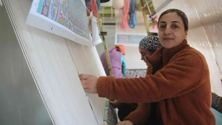 Ukrayna´daki savaş bölgesinden tahliye edilerek Elazığ´da geçici konaklama merkezine yerleştirilen Ahıska Türkü kadınlar, Halk Eğitim Merkezi tarafından açılan halı dokuma kursunda hem meslek öğreniyor hem de aile ekonomilerine katkıda bulunuyor.