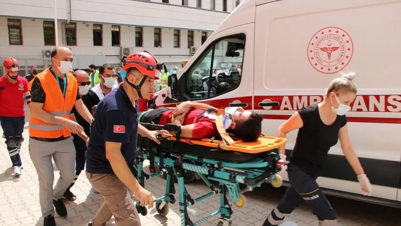 İllerinde gerçekleşen 5.8 büyüklüğündeki depremden ötürü hastanenin 3´üncü katında bir yangın meydana geldiğini kaydeden Mediline Hastanesi Kurumsal İletişim Müdürü Emine Kabacıoğlu, ´´Olay yönetimi toplanarak Kırmızı ve Mor kod verildi. Olay yerinin aldığı kararlar doğrultusunda hastanede hasta ve personel tahliyeleri gerçekleşti. Sonrasında UMKE, 112 ve itfaiye ekiplerine bilgi verildi. 3´üncü katta alçıpanın düşmesiyle yaralanan 1 travma hastası yangından etkilenen 1 yaralımız ve tahliye sonucunda ayağında yaralanan 1 yaralımız olma üzere toplamda 3 yaralılarımızın en yakın hastanelere sevkleri sağlandı. Hastanemiz 13.40 itibari ile tüm tahliyesi sağlandı. Bu tatbikatla beraber hastanedeki personellerimiz bilinçlendi ve akabinde böyle bir durum olduğunda neler yapacaklarını öğrenmiş oldular´´ diye konuştu.