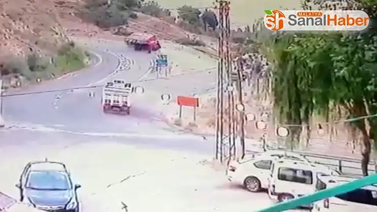 Elazığ'da kamyonun devrilme anı kameralara yansıdı