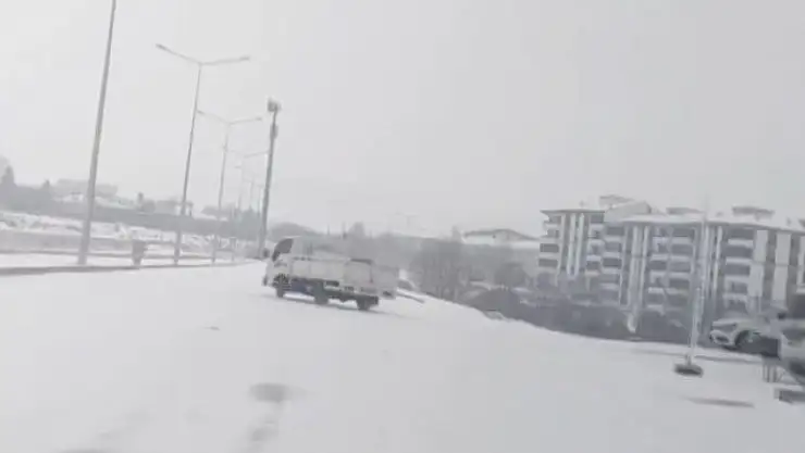 Elazığ´da kar yağışının ardından caddede bir kişi pikapla drift yaptı. Trafik magandasının tehlikeli hareketleri cep telefonu kamerasına