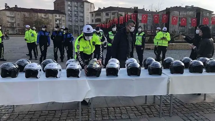 Konuşmaların ardından motosiklet sürücülerine kask dağıtıldı.