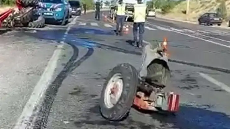Elazığ´da otomobil ile çarpışan traktör ikiye bölündü. Kazada, 2 kişi yaralandı.